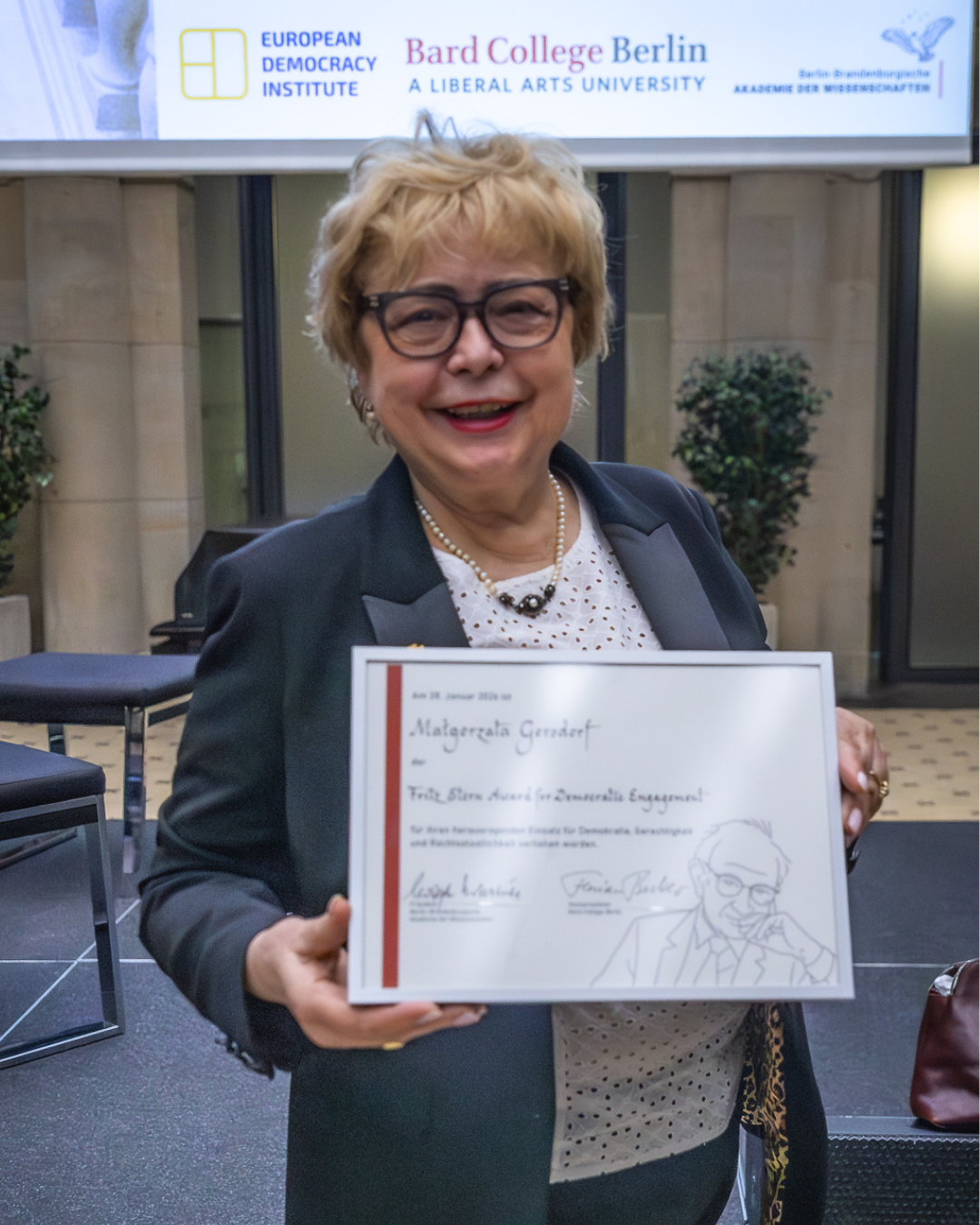 The award was bestowed by the European Democracy Institute at Bard College Berlin and the Berlin-Brandenburg Academy of Sciences in a ceremony on January 28, 2026, which also marked the official opening of the European Democracy Institute. More >