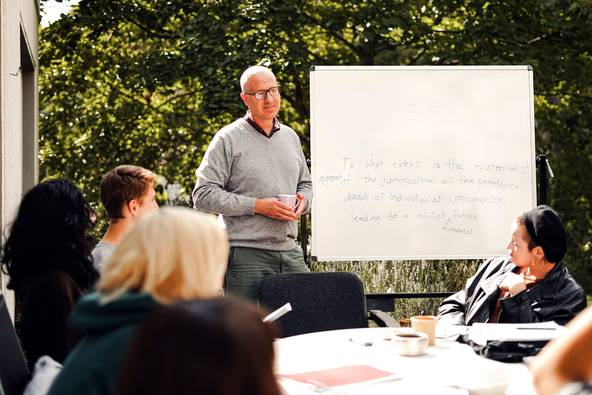 During the program students meet in small groups led by an instructor. Every group is different and incorporates specific readings from the anthology as well as other activities and excursions, but they all have the goal of introducing new ways of writing, thinking, and creating. One session might focus on creating a dialogue between two readings. In another session the goal might be to turn a philosophical essay into a play. Alternatively, a session might offer strategies for peer reviewing a short essay that another student wrote the previous night.
