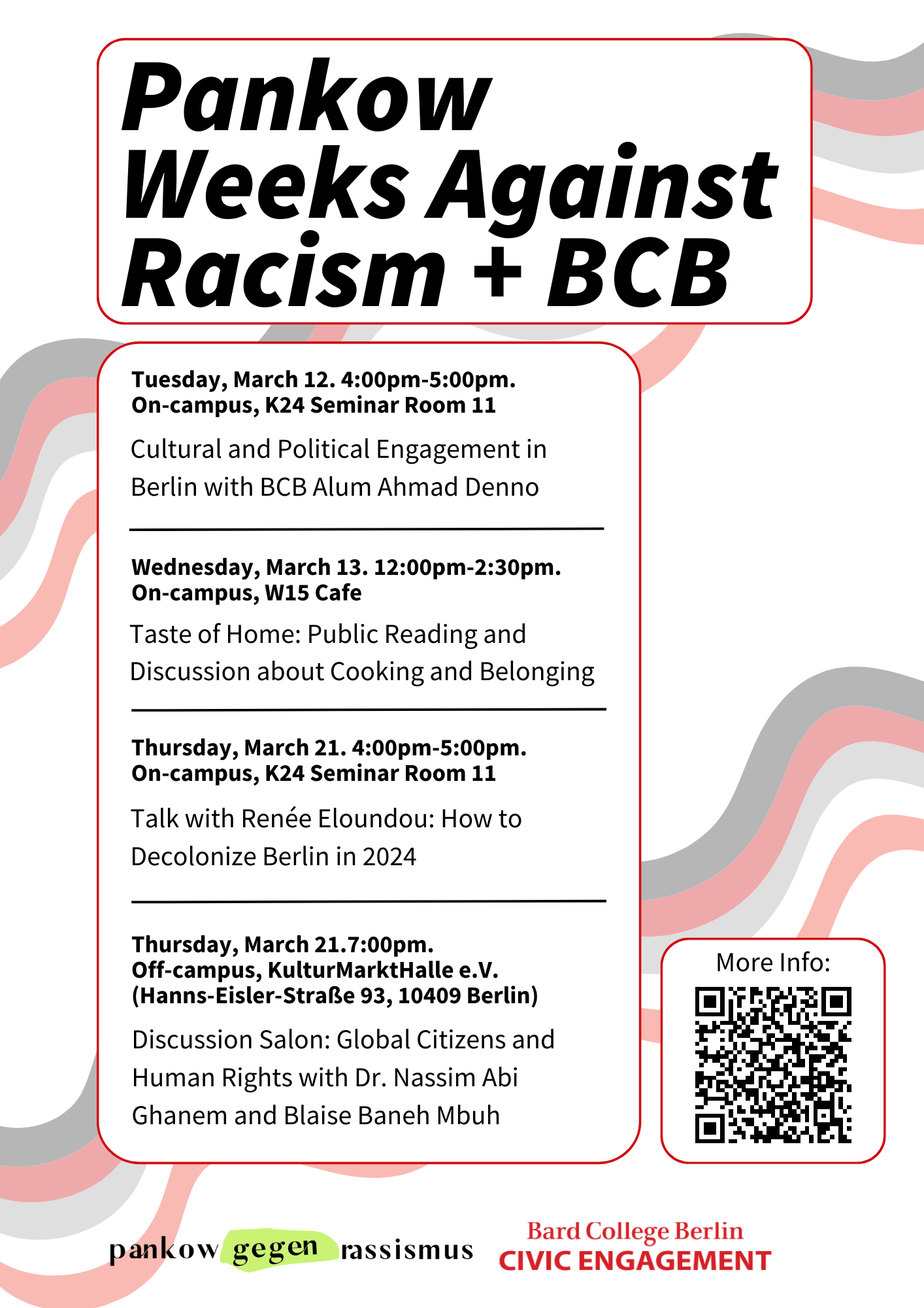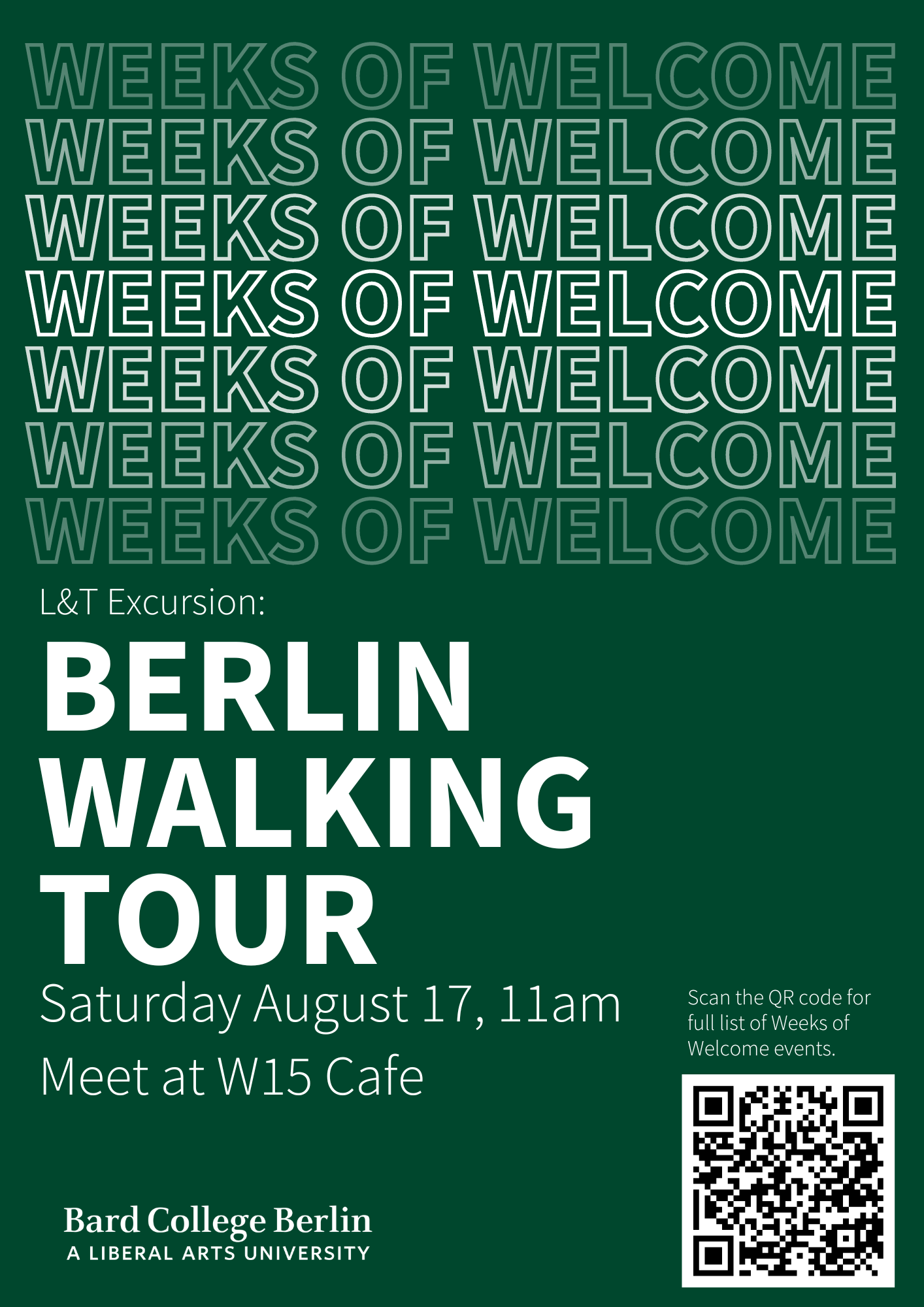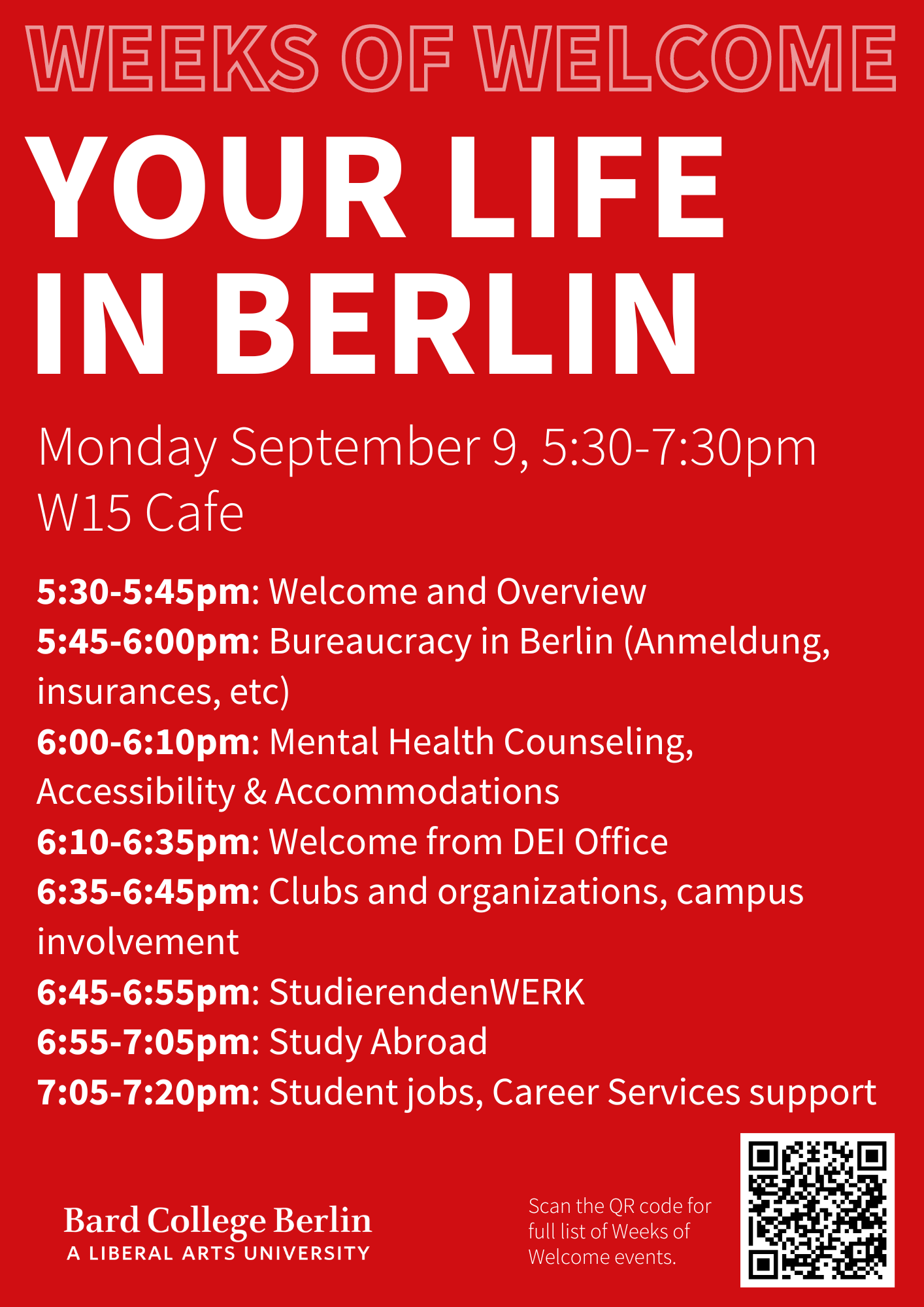 Please join us for the Spring 2024 Berlin Weekend from February 3-4! Berlin Weekend is a collection of free or low cost activities hosted by students, staff, and faculty that offer the entire BCB community a chance to explore Berlin and attend unique events.