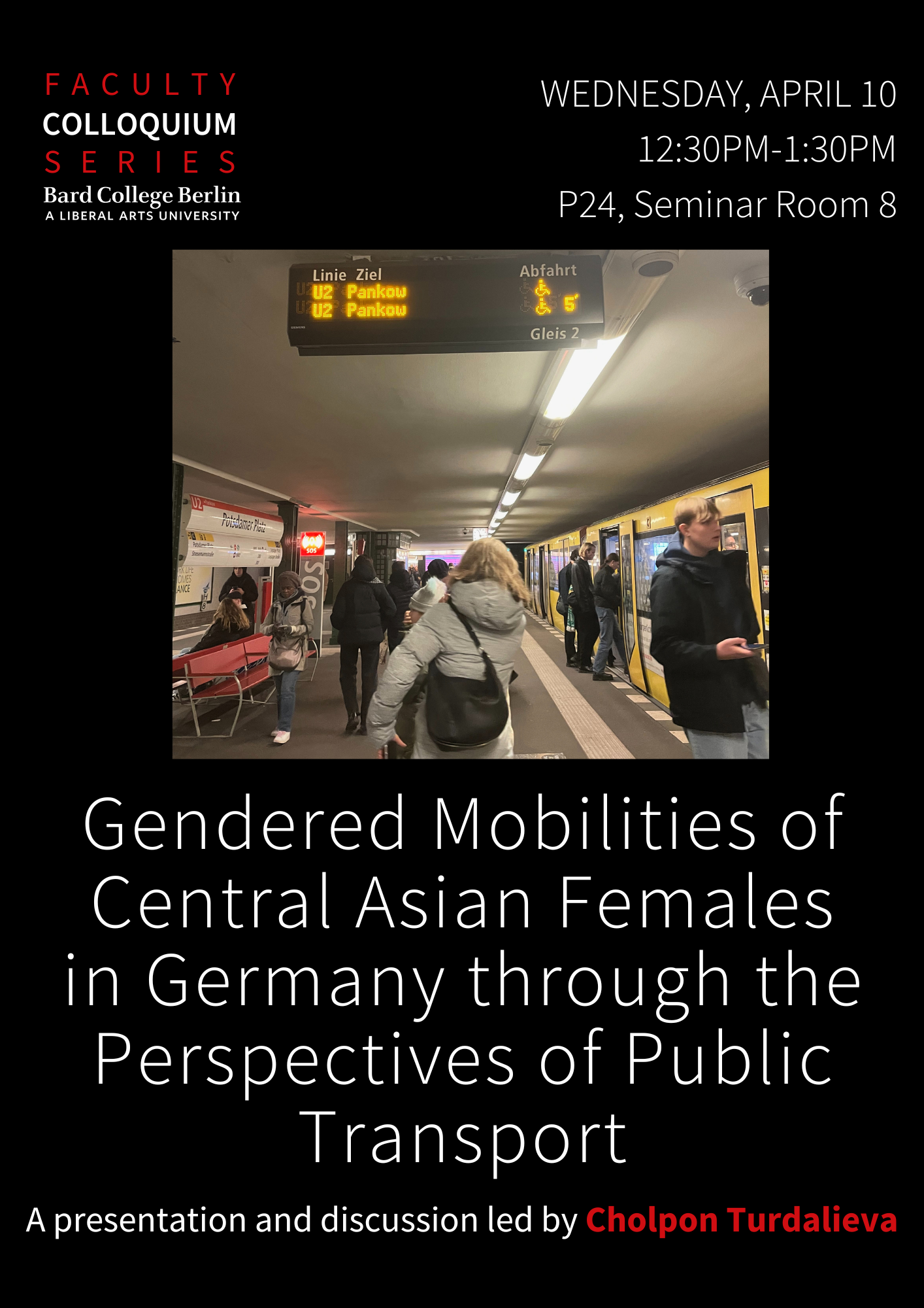 Aiming to remedy the lacuna in the interdisciplinary mobility and migration literature, the main objective of the present research project is to examine Central Asian migrant women in Berlin through their commuting experience on public transport. I aim to address several issues and questions as the following. To what extent is Central Asian women's integration in the host city influenced by daily commuting on different modes of public transit? How are women's employment, studying, income, and kinship networks realized or imposed in Germany's ethnocultural communities and other diverse multiethnic groups? Following these questions, my research will be geared to produce academic and practical insights into the intersection of gendered mobility, migration, and public transit. We argue that Central Asian women migrants realize their socio-economic, educational, professional, and other personal and public goals in Germany by navigating their mobility, presumably through public transit transport. In this vein, we may think that automobility technologies, particularly the well-developed public transit in Berlin, empower Central-Asian migrant women by allowing them to move through different public spaces and traverse physical and social boundaries with greater ease and practice.