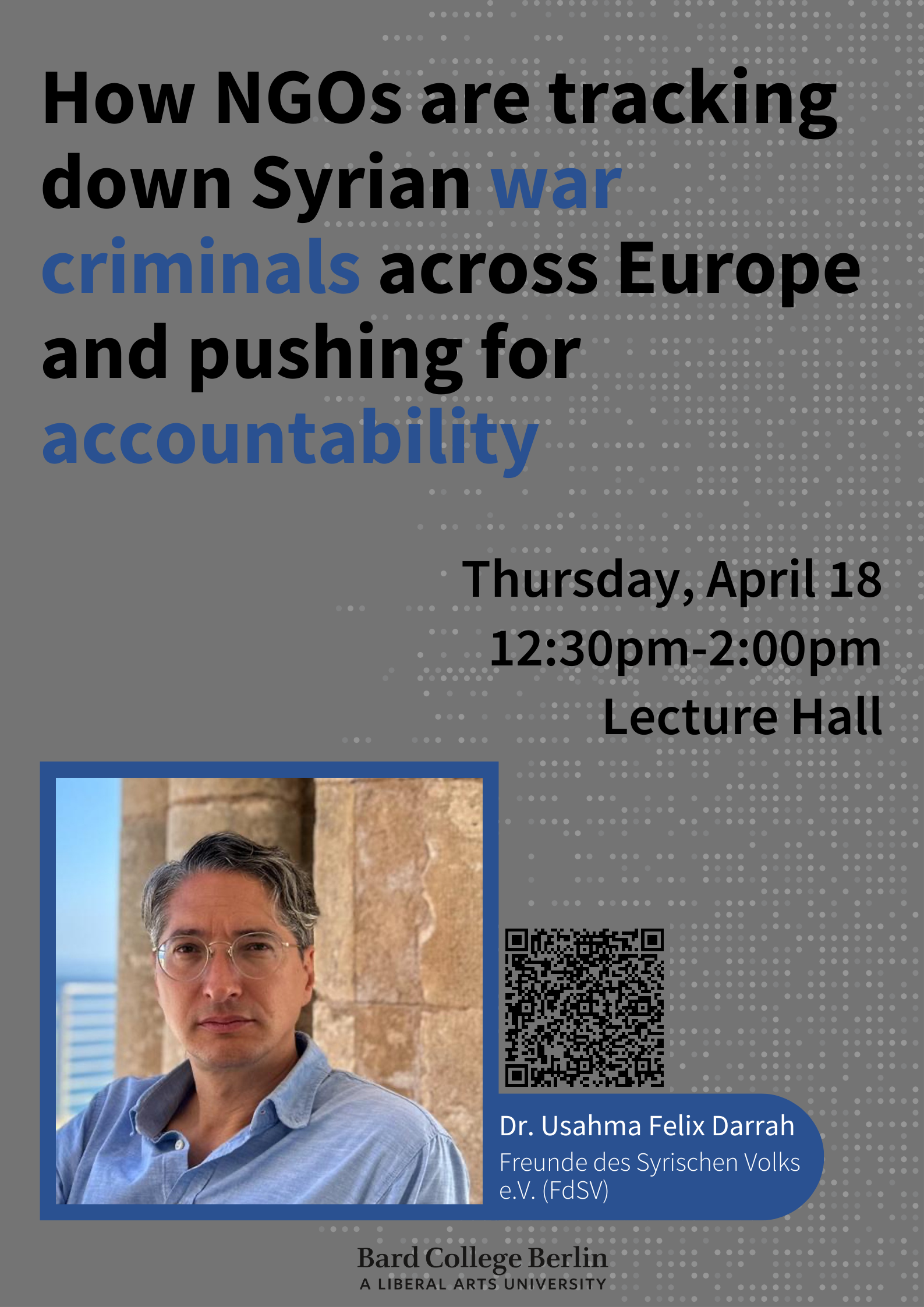 Now living in Germany, Nebras works in software engineering and entrepreneurship. He envisions fostering a culture of entrepreneurship in Syria to help rebuild and empower its citizens. Inspired by Berlin’s transformation after 1945, he believes in the potential for renewal. Nebras admires Kreuzberg for its activism and history, which mirrors his hope for a thriving, democratic Syria.