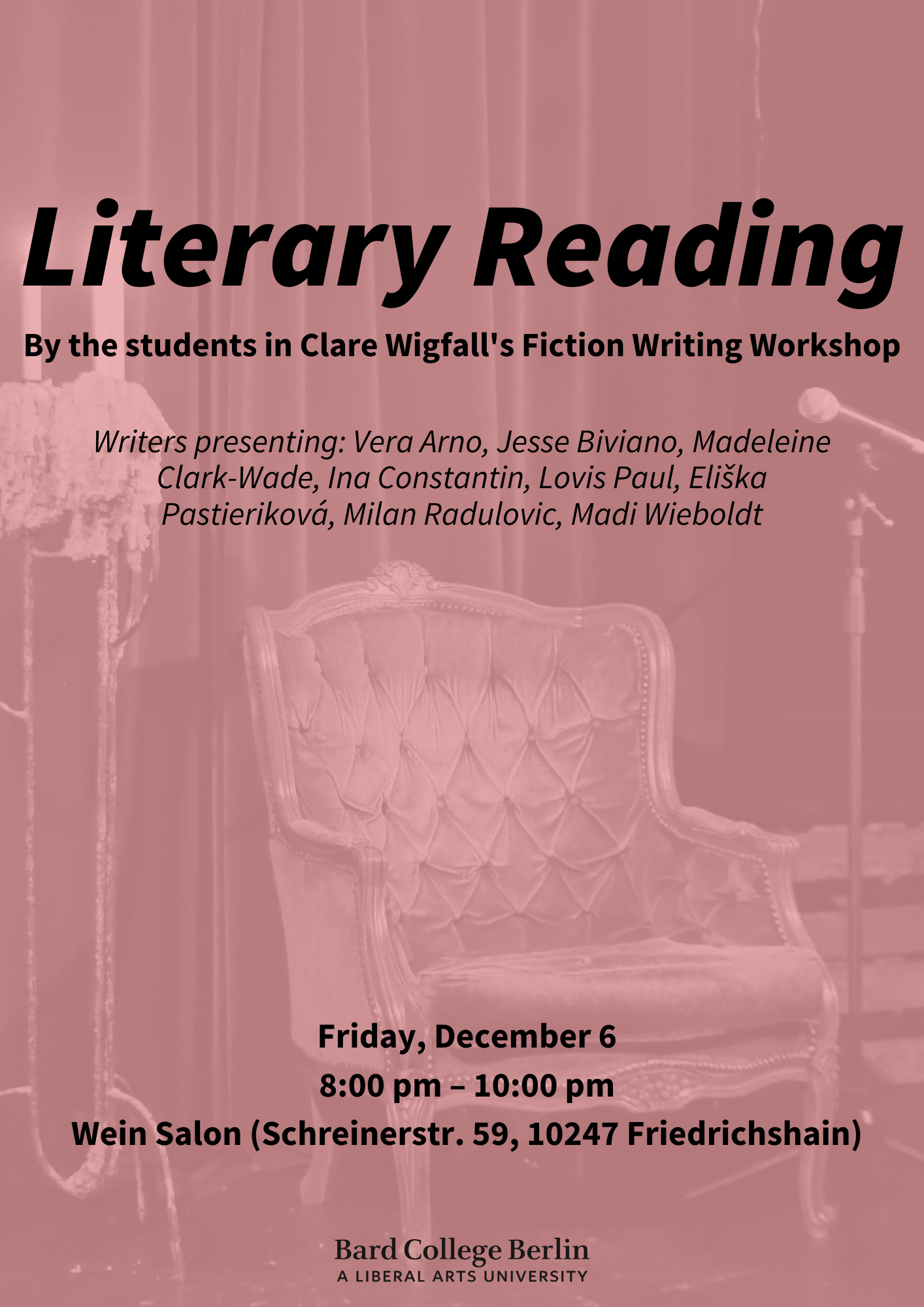 On December 13, visual arts students will showcase their work at Monopol (Provinzstraße 44, 13409 Berlin). View more information here.