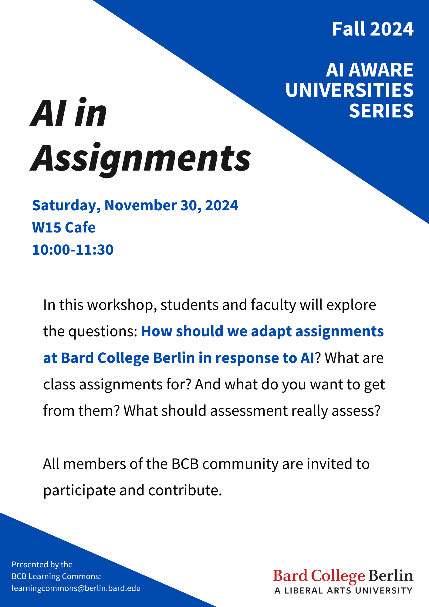 Learning Commons (W16) 5:30 pm – 7:00 pm CET/GMT+1