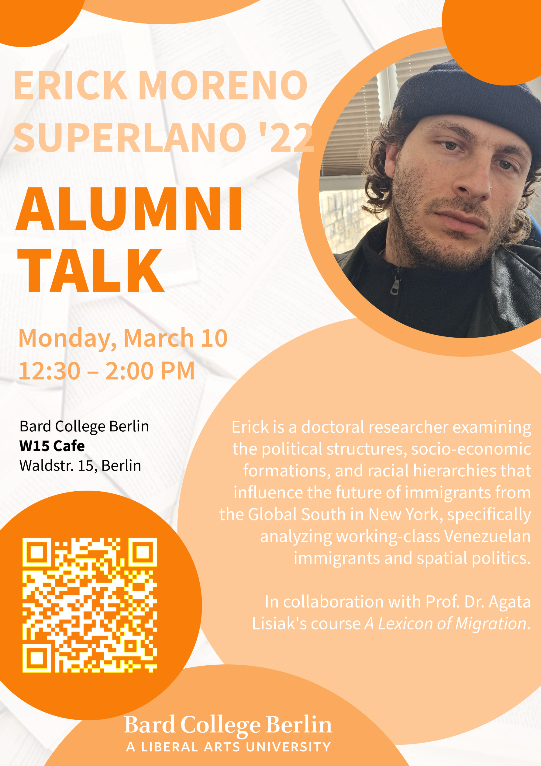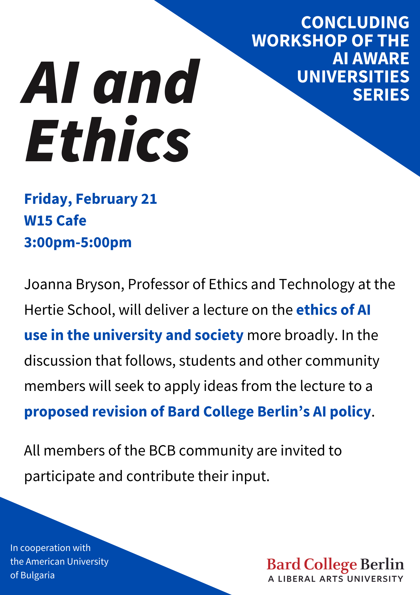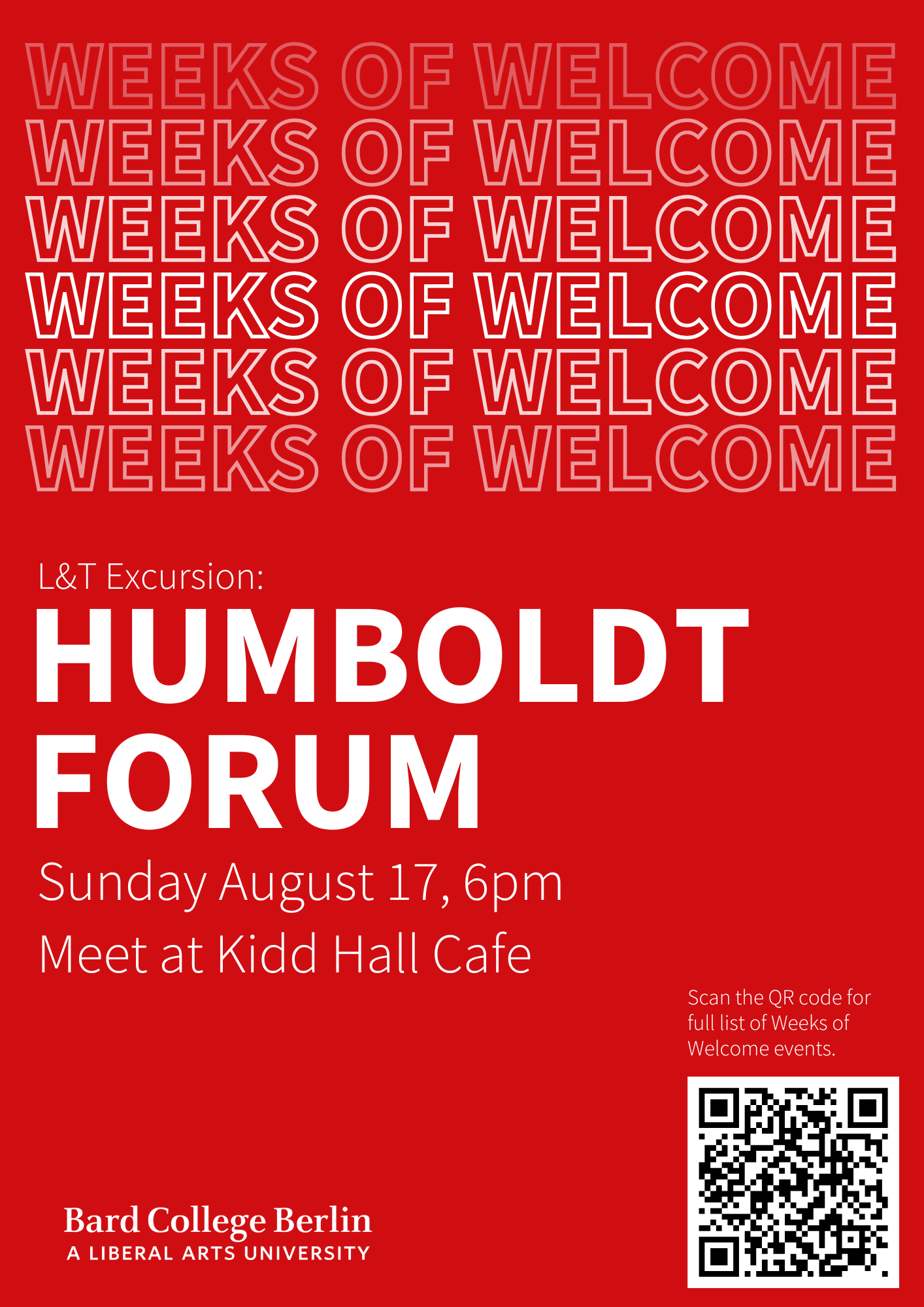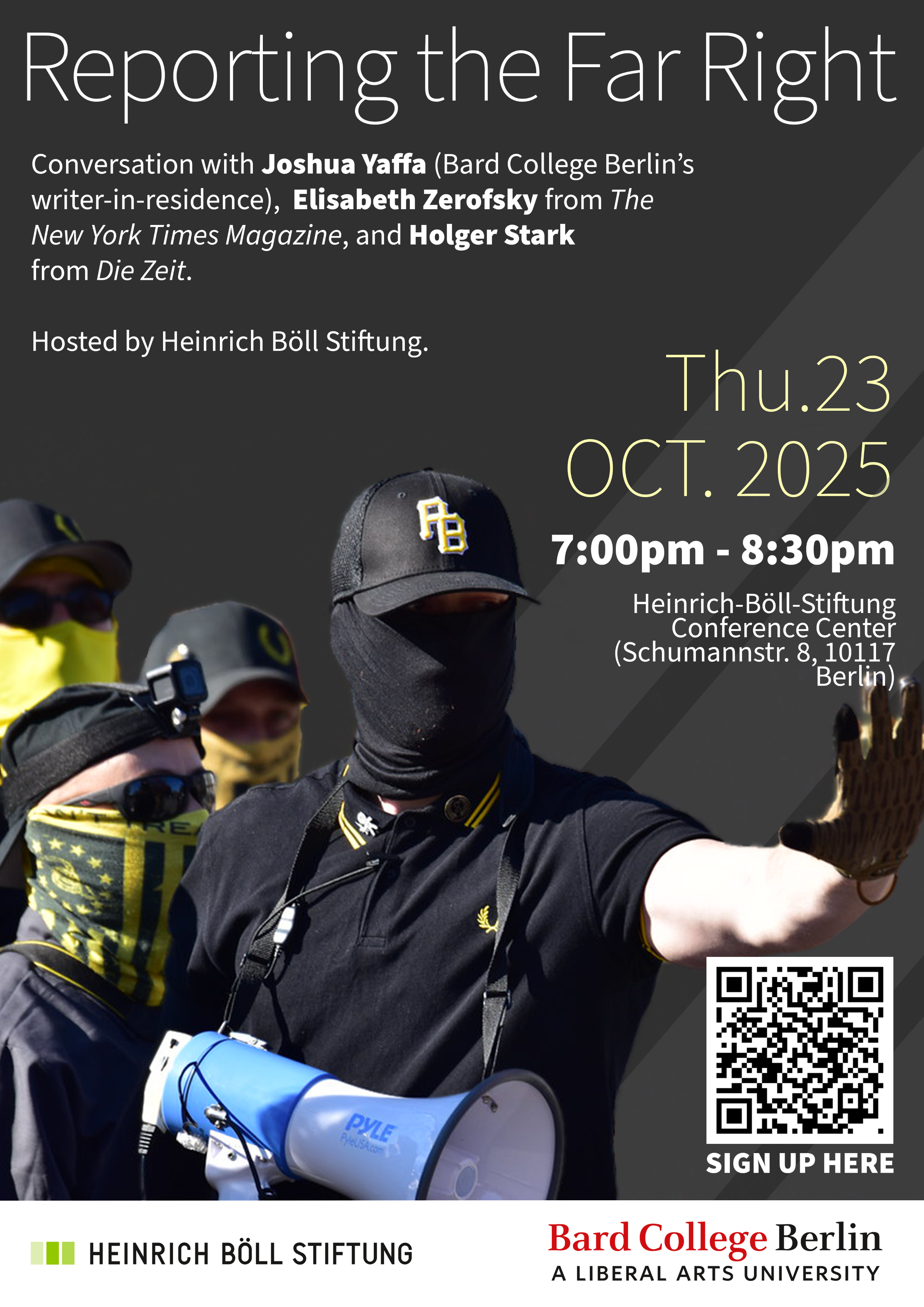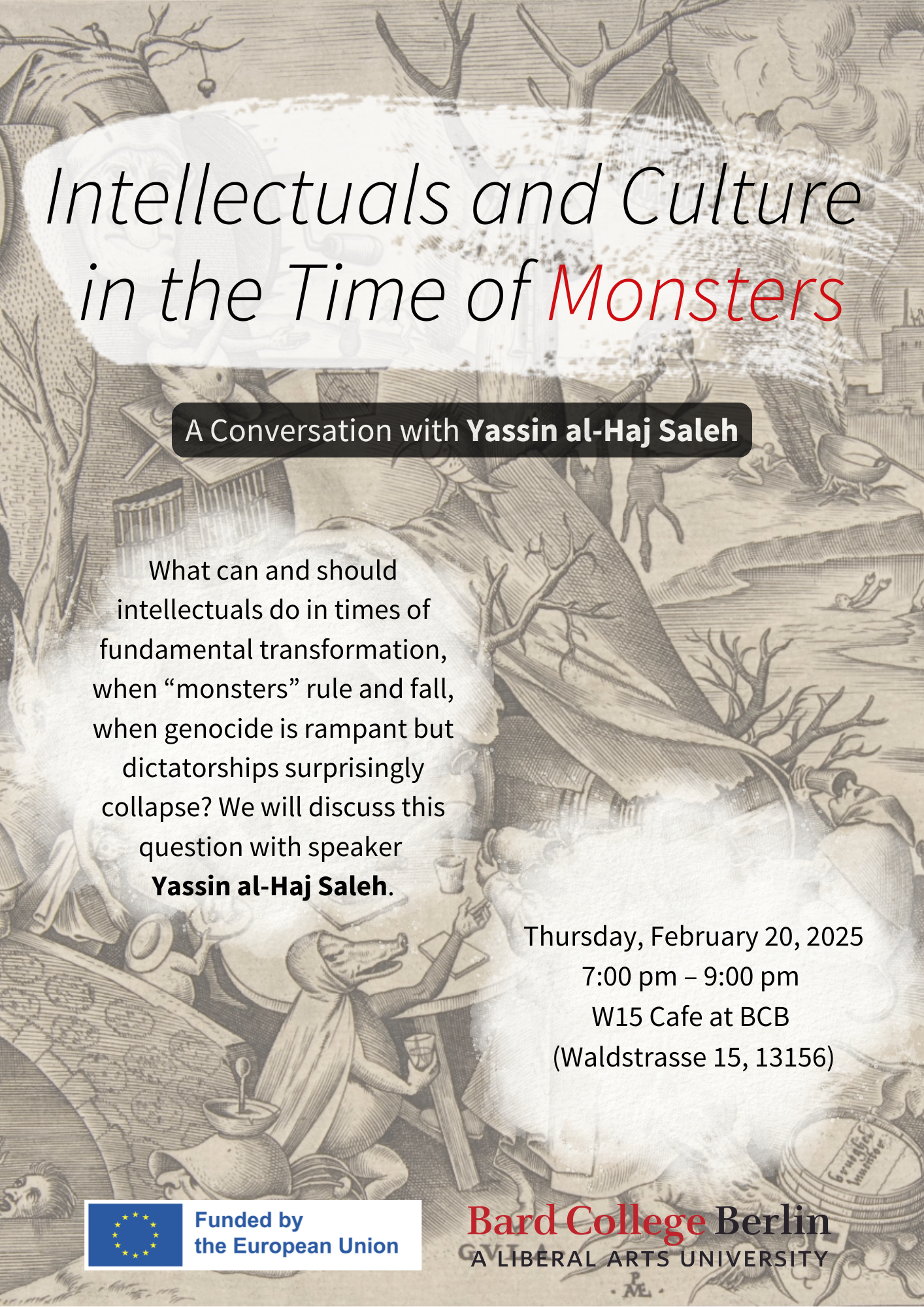 Open Classroom allows people to experience university-level courses taught at Bard College Berlin in an informal setting that is open to everyone. It also aims to engage students to share the knowledge gained in the courses they attend as a part of their curriculum. Takes place every Thursday.