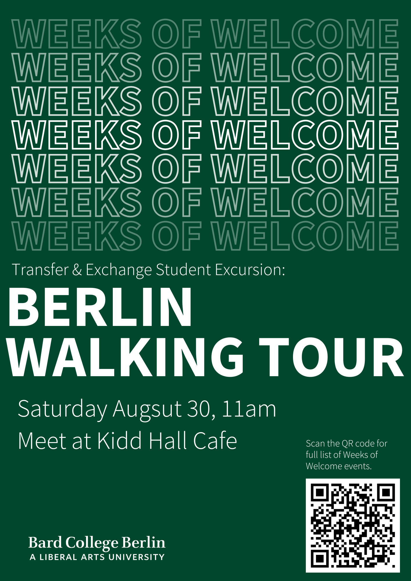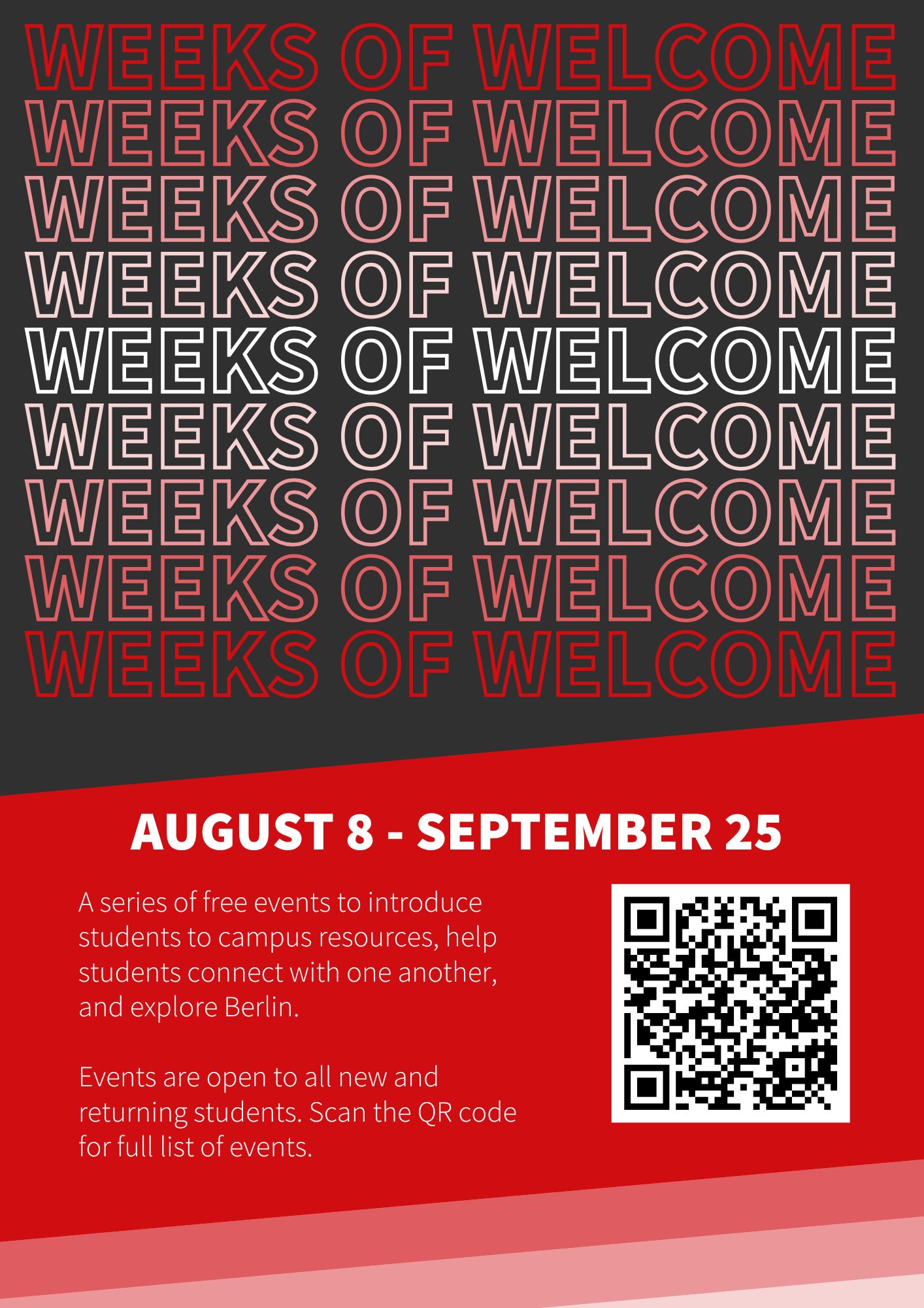 Various Locations Berlin Weekend is a longstanding BCB tradition, giving our community the opportunity to welcome and get to know our new students and show them what Berlin has to offer. There are a variety of events taking place over the entire weekend. Be sure to sign up!