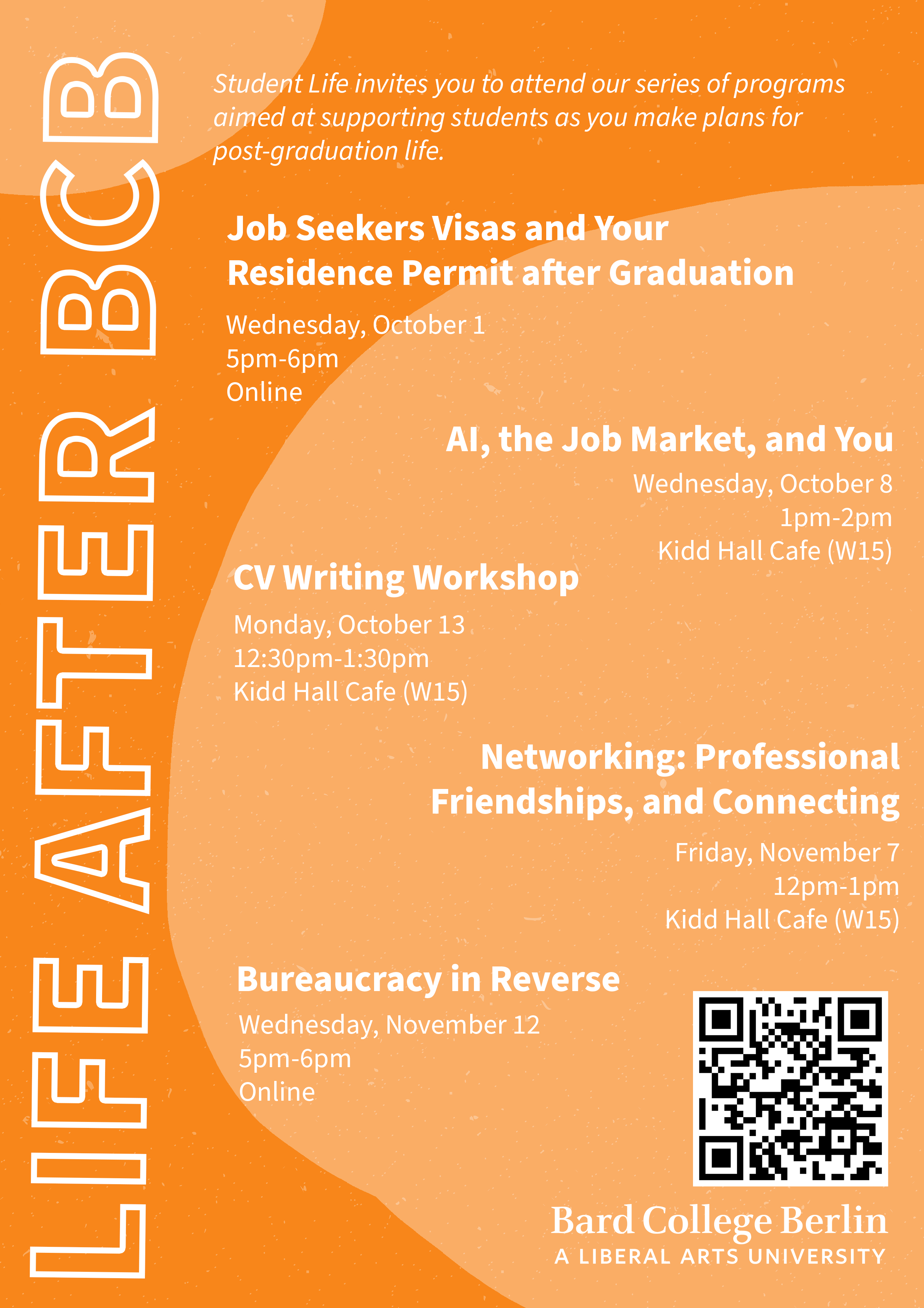 Bard College Berlin accepts applications for transfer to the BA degree programs in Fall 2025. The deadline for applying is February 15, 2025, at 23:59 in your time zone.